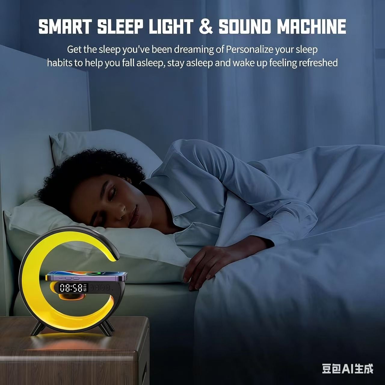 Enhance your space with this versatile lamp! 🌙 Not only does it set the perfect atmosphere, but it's also a fast wireless charger ⚡, a Bluetooth speaker 🎵, and a hub of features including music 🎶, sleep aid 💤, sunrise wake-up simulation 🌄, and more. Use it for work 💼, study 📚, reading 📖, and relaxation 😌.