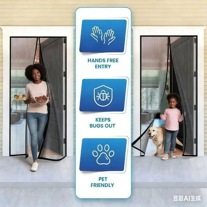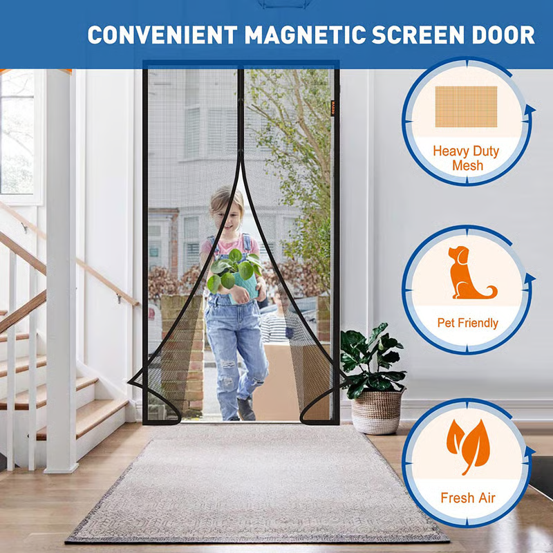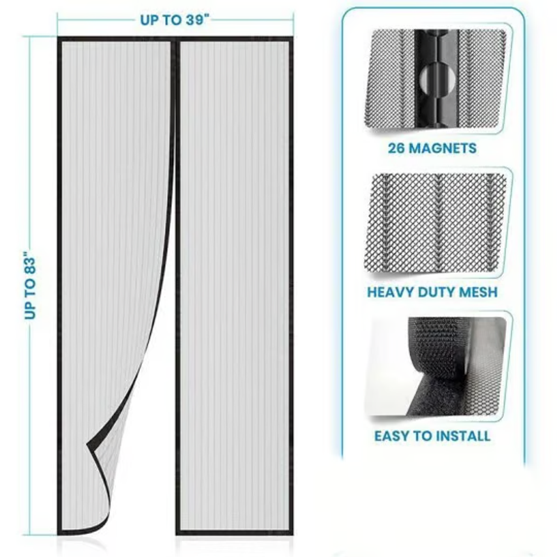 A great way to help block mosquitoes. The door mesh is a hands-free screen door that easily opens without hands and uses powerful magnets to instantly close itself to keep fresh air in and bugs out and is 30% stronger.