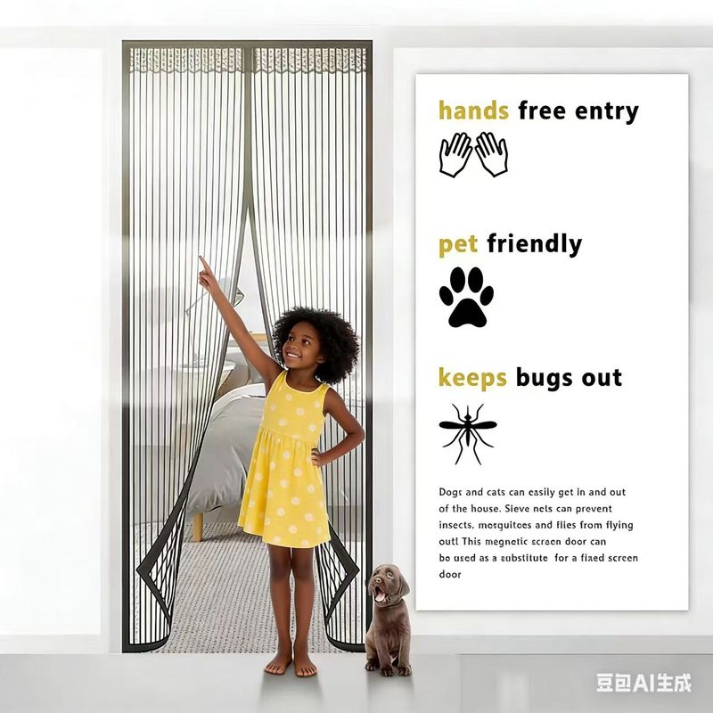 - 【🧡HUMAN PETS FRIENDLY】 Magic retractable screen door allows humans directly walk through while your hands are full. Pets like dogs or cats are also easy to go inside and outside of your house. The screen net helps keep insects, mosquitos and flies out.