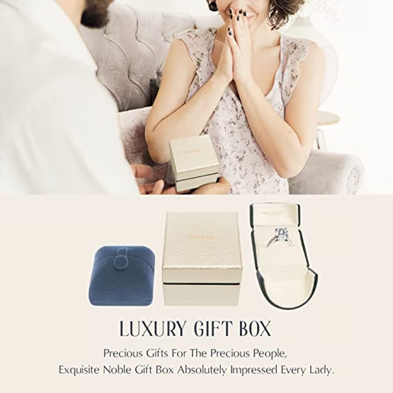 Give your beloved one some surprises! This is the perfect gift for any giving occasion, commitment, engagement or wedding gift, great Christmas gift, Thanksgiving gift, birthday gift, congratulations gift, holiday gift, mother's day gift, anniversary gift for women, mother, wife or girlfriend, all moissanite rings come with a velvet ring box valued at $15 ready to be given as a gift to your loved ones.