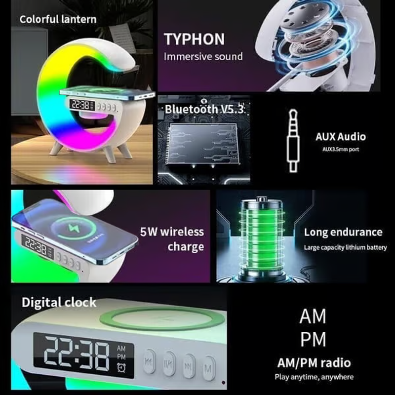 🔥⏰Multi-functional Wireless Charger Atmosphere Lamp+Bluetooth Speaker+Clock🌟